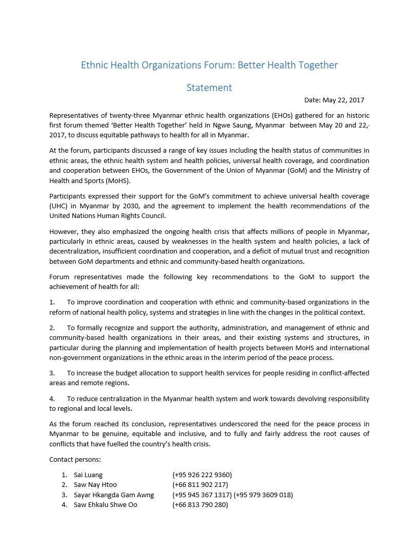Ethnic Health Organizations Forum: Better Health Together Statement